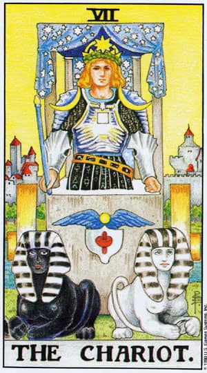 Rydwan (Wóz triumfalny) oznaczony jest cyfrą siedem. Wskazuje jakie kryteria muszą zostać spełnione, by osiągnąć wyznaczony cel. Wola walki, trud oraz wiedza jak działać oraz jaką ścieżką podążać jest kluczem do sukcesu. Jest gotowy do postawienia kroku do przodu, by zacząć życiową wędrówkę. Karta uprasza, żeby uwierzyć w siebie oraz dojrzeć, iż jesteśmy silniejsi, niż nam się zdaje. Niestety nie umiemy prześwietlić samych siebie, by dokonać analizy i czarno na białym dostrzec mocne i słabe strony naszej osobowości. Rydwan uosabia rozwój w pozytywnym znaczeniu. W negatywnym aspekcie uosabia niepomyślność, zastój, brak wiary w siebie, niebycie świadomym swoich zalet.