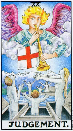 Sąd Ostateczny (Zmartwychwstanie) oznaczony jest numerem dwadzieścia. Jest to wyższy poziom świadomości. Trzeba pomyśleć nad swoim zachowaniem. Co spowodują nasze działania? Jaki będzie ich rezultat? Złe zachowania powinniśmy naprawić, przepraszając osobę, którą skrzywdziliśmy. Możemy zapytać, jak moglibyśmy jej to wynagrodzić. Czego pragnie? Karta prosi o jeszcze jeden powrót do przeszłości. Analiza, wyciągnięcie wniosków, naprawa popełnionych błędów pozwoli raz na zawsze zamknąć ten rozdział i zacząć wszystko od początku. Tak, by przeszłość przestała być koszmarem, który nas prześladuje.