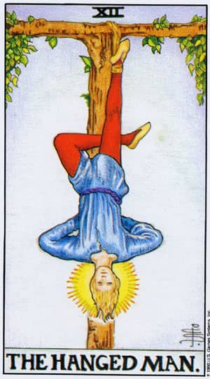 Wisielec (Zawieszony) oznaczony jest cyfrą dwanaście. Symbolizuje bierność lub zależność. Nie mamy kontroli nad życiem. Jak łódka na morzu, którą niosą fale. Jest to czas, w którym utknęliśmy. Wszystko stoi w miejscu. Pojawia się ochota uwolnienia się. Nie mamy ochoty oglądać nas więcej w roli niesamodzielnego, bezbronnego człowieka. Karta uosabia przemianę wewnętrzną. Pomyślmy jaką lekcję możemy wyciągnąć z tego zdarzenia. Spróbujmy zerknąć na to z innej perspektywy. Trudne położenie, pragnienie przetrwania, adaptacja wypełni nas życiowym doświadczeniem. Skupmy się na podświadomości. Przemyślmy życie. Pomoże to w lepszym zrozumieniu sytuacji. Wisielec często ukazuje dobrowolne poświęcanie się.